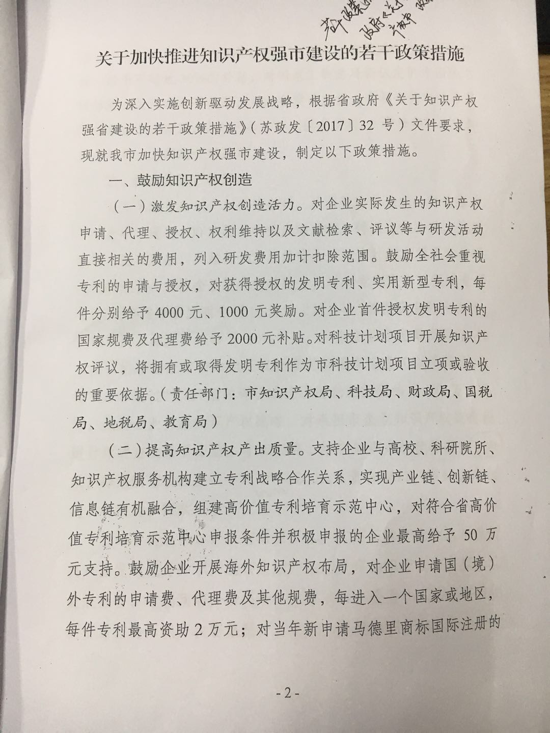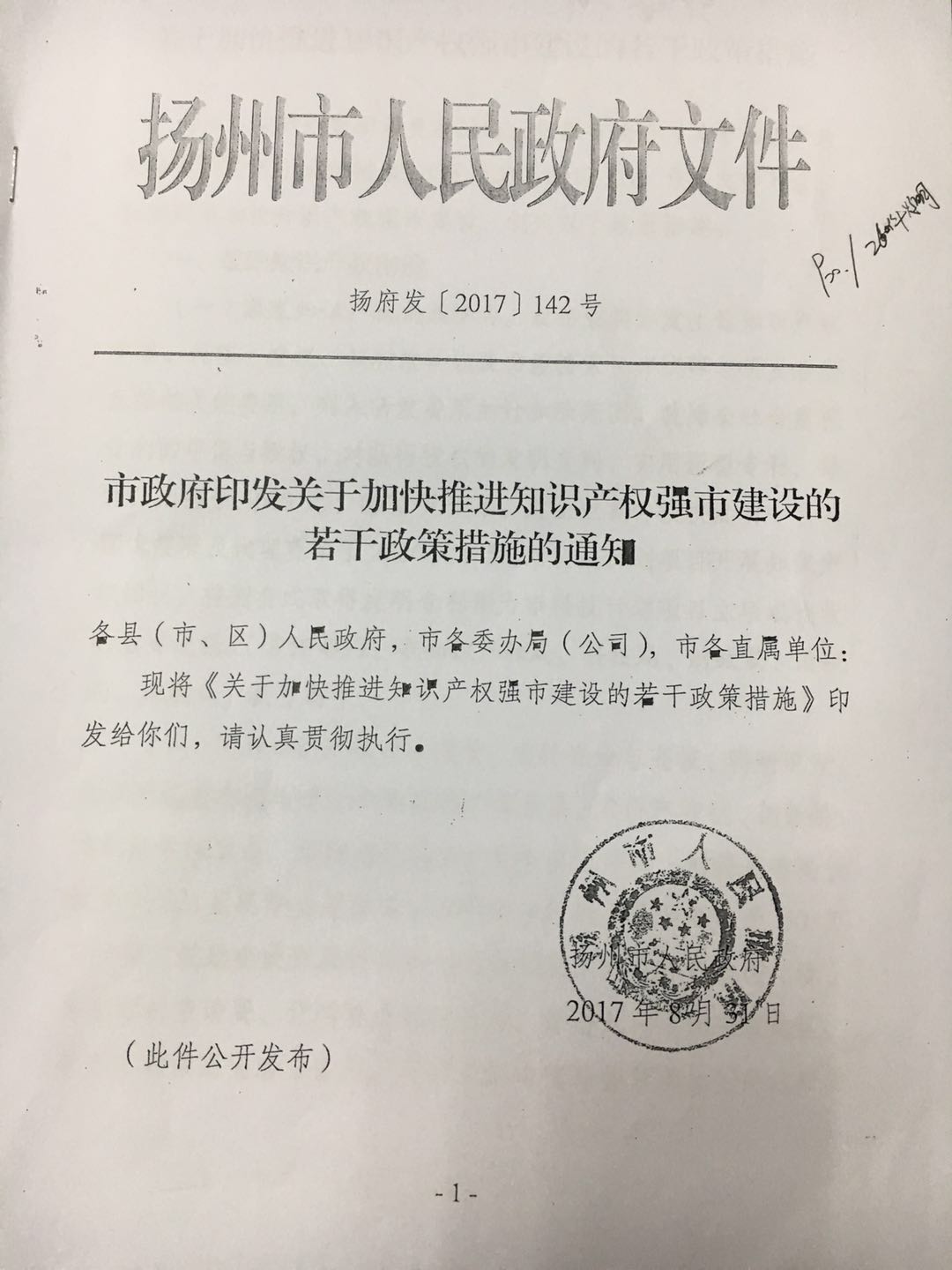 市政府印发关于加快推进知识产权强市建设的若干政策措施的通知